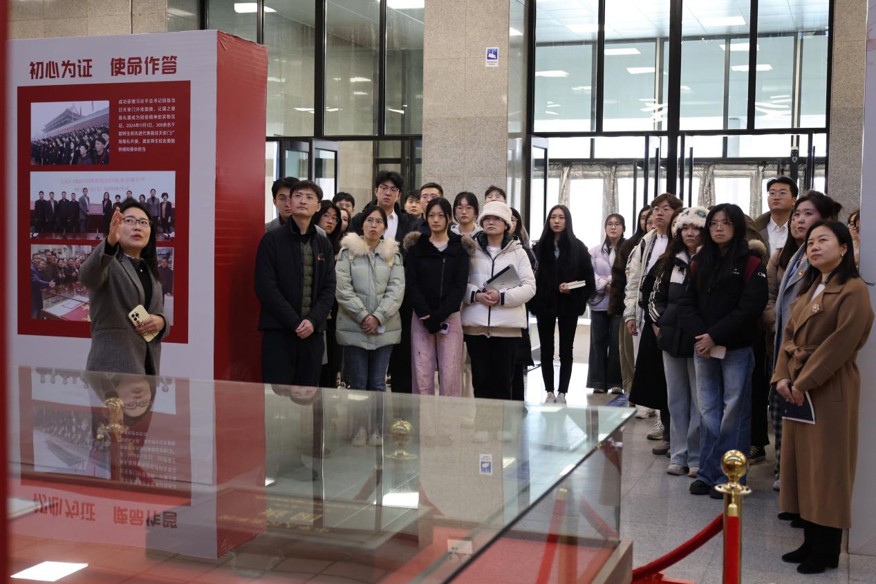 3月6日下午,建艺学院组织学生党员集体参观了学校举办的“牢记嘱托、接续奋斗”习近平总书记重要回信一周年主题展览。学院党委书记秦思阳、本科及研究生辅导员和50余名学生党员一起参观展览,校党委宣传部韩榕老师受邀作专题讲解。