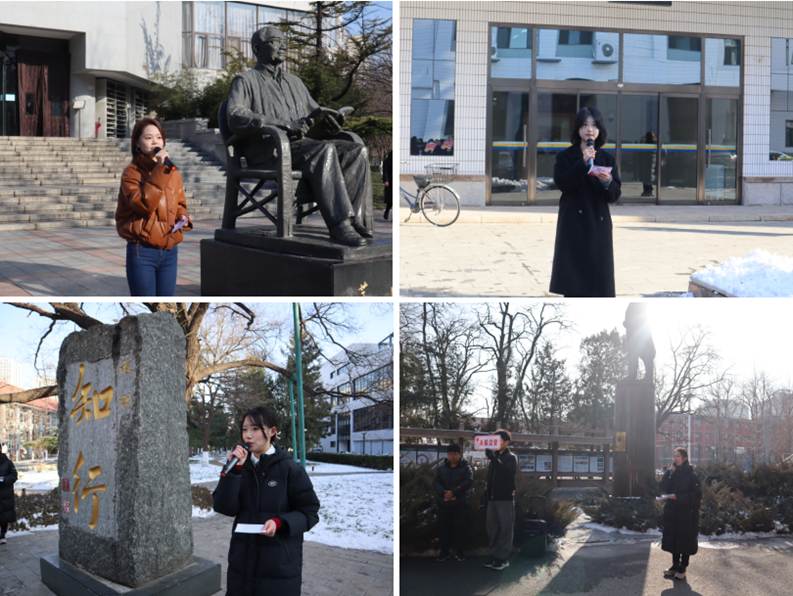 在思源楼领袖关怀主题屏风处,讲解学生围绕中肯友谊与“一带一路”合作中的青春故事,阐释新时代青年应有的使命与担当;图书馆茅以升雕像前,大家聆听“中国现代桥梁之父”的生平事迹,感受大国工匠精神的深刻内涵;科学会堂郑振铎雕像旁,师生共同回顾这位文化巨匠践行知行合一、胸怀家国的人生历程,进一步坚定文化自信;知行校训碑前,同学们共同追溯校训的历史渊源与现实意义;天佑会堂詹天佑雕像处,师生回顾我国交通事业的发展历程,展望交大人实现交通强国的梦想与担当。