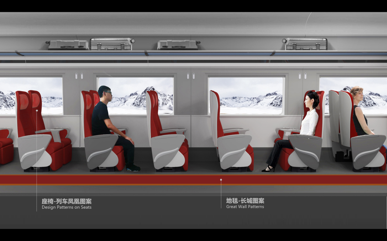 评审会中,“京张高铁列车车厢空间视觉设计技术研究”子课题负责人张野老师汇报了研究成果,详细向与会专家讲解了子课题任务和完成情况。从分析京张高铁与冬奥相关文化类型分析出发,基于工业设计双钻模型,构建起文化向列车载体转译设计的理论,提出了完整系统的京张高铁设计美学与文化生成对应机制研究成果,并介绍了九套冬奥主题京张高铁列车涂装及车厢内部空间创意设计方案设计。