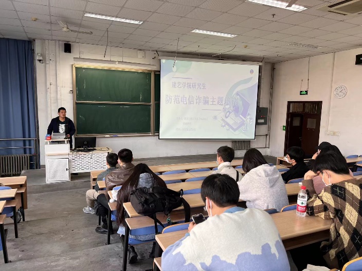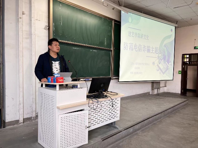 为增强建艺学院研究生网络安全意识,提升防骗、识骗、拒骗能力,2022年11月3日,建艺学院联合保卫处于逸夫楼303教室举办防范电信诈骗主题培训会,学校保卫处副处长吴斌老师做专题培训,学院全部在校研究生参加,本次培训由学院研究生辅导员张帅老师主持。
