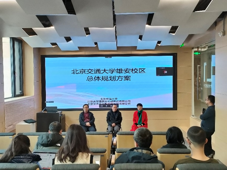 方案介绍过后,郑方教授、佘高红副院长、蒙晓英教授与在场师生充分交流,和老师、同学们分享心得,共同为服务新校区规划建设努力。佘高红回顾了多年以来学校寻求新校区的发展历程,提出要特别珍惜建设雄安新校区的宝贵机遇。蒙小英介绍了雄安新校区的景观规划系统。在座的老师和同学们也分别从校园规划的绿化、防灾、交通、校城融通等方面提出问题和专业建议。