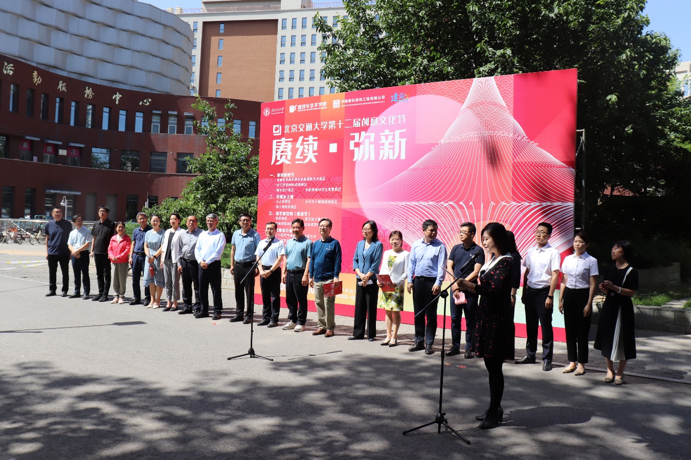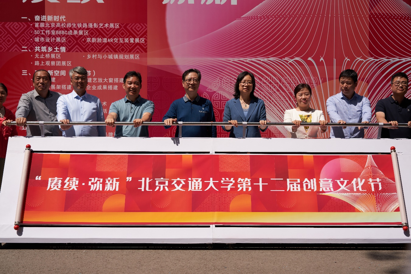 初夏的校园阳光和煦、绿树成荫。5月23日上午,主题为“赓续·弥新”的小鸭看看 第十二届创意文化节开幕式在建艺学院伞亭广场精彩开幕。校党委副书记文海涛,中国铁路摄影家协会副主席兼秘书长王博轩,中国铁道博物馆党委副书记、工会主席刘恒,《铁道知识》杂志社原社长、主编魏宗燕,中建新科装饰工程有限公司党总支副书记罗阳等,北京京诚集团有限责任公司副总经理王永久等,密云区溪翁庄镇市民活动中心主任季新等,学校党委宣传部、学工部、研工部、团委、后勤集团、保卫处、外联处、就业与创业指导中心等相关单位负责人,建艺学院师生代表共同参加开幕式。