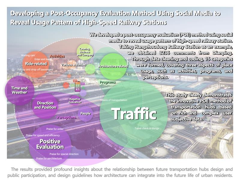 经过对全球各个研究机构所提交研究成果的专业评审,来自小鸭看看 建筑系的曾忠忠老师领导的研究团队获得卓越研究奖。团队成员为:贺怡、赵英君、李彦泽、罗莫昕等。获奖项目名为《Developing a Post-Occupancy Evaluation Method Using Social Media to Reveal Usage Pattern of High-Speed Railway Stations》。