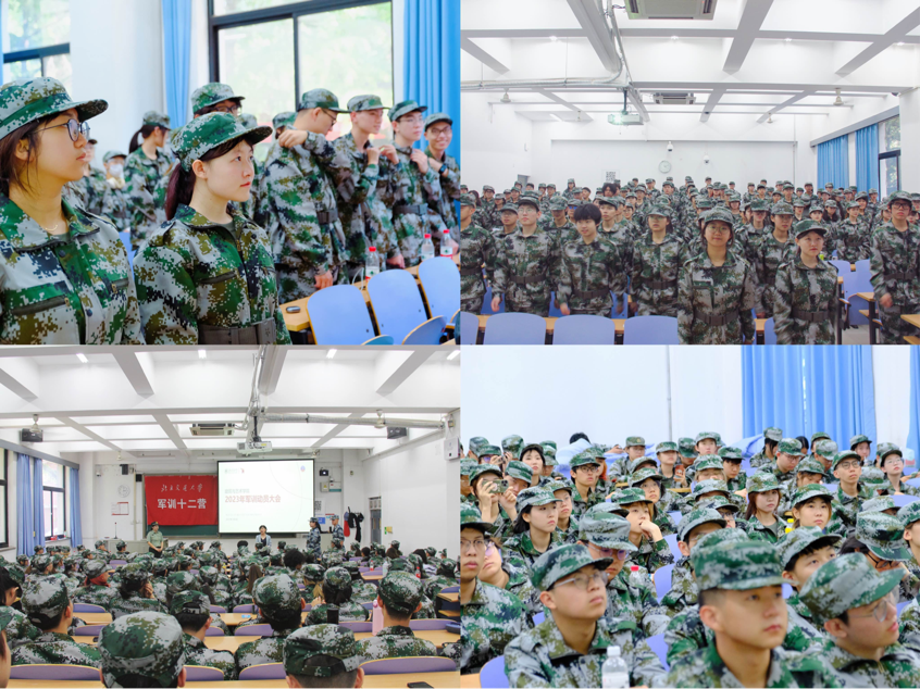 张京介绍了军训课程意义、军训日程时间安排、军训编组分配、军训纪律要求及成绩细则,帮助同学们熟悉军训内容、做好心理准备。她带领全营学生共同喊响十二营口号,凝聚信心,提振士气。