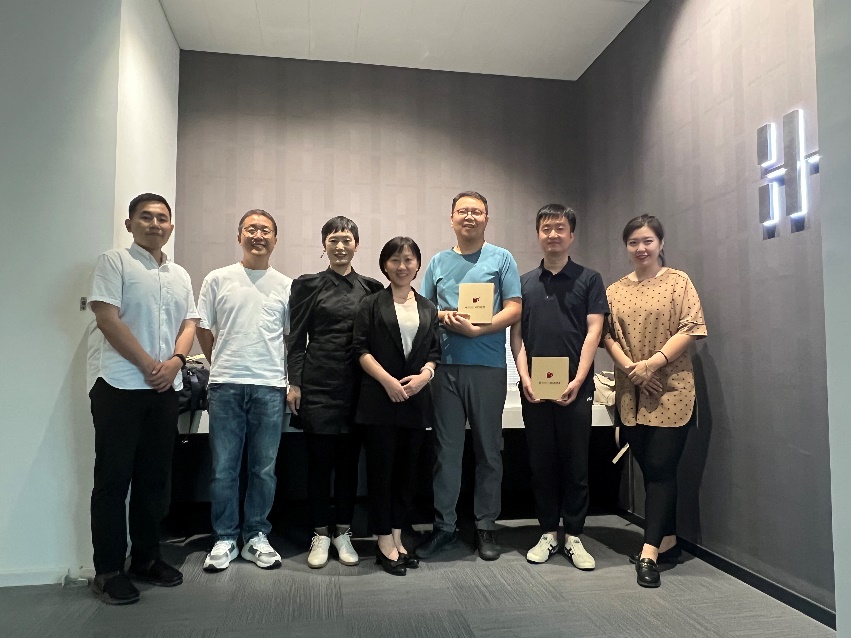 随后,建艺学院一行来到西北设计研究院H+青年建筑师工作室走访校友。00级建筑学专业校友金岩、05级建筑学专业校友伍垠钢带领老师们参观了工作室并亲切座谈。校友们毕业后一直牵挂着母校的发展,再次见到上学时的老师感到十分亲切,他们介绍了近年来个人的发展情况,展示了设计院近年来的作品集和设计成果。刘萍代表学院向校友们送上学生亲手设计的文创,嘱托校友今后常回学院看看,指导和支持更多学子到西北院就业。