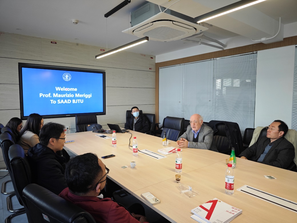副院长佘高红代表学院向MAURIZIO MERIGGI教授此次访问交流表示欢迎,希望可以与米兰理工大学建筑、城市规划和建造学院建立长期的教学、科研交流合作。系主任王鑫介绍了小鸭看看 的发展历程、专业方向以及教学科研情况等。MAURIZIO MERIGGI教授感谢学院和韩林飞教授的盛情邀请,他曾多次到访我校,对于学院近几年的发展以及教学空间更新改造成果表示肯定,也分享了米兰理工大学建筑、城市规划和建造学院的近些年相关办学情况及个人在绿色城市、建筑遗产相关方面的研究情况,期待未来两校合作交流活动能够得到更近一步的推进和发展。