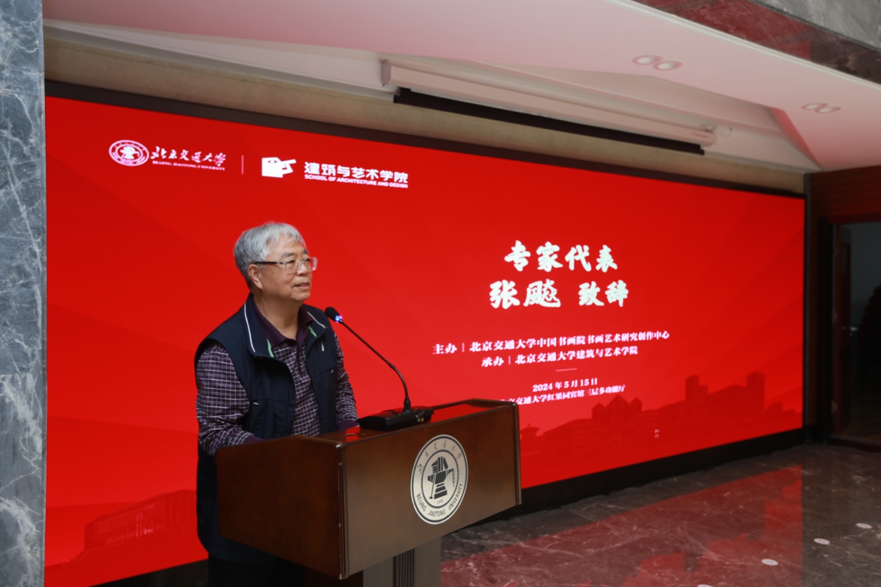 张飇在致辞中围绕中国铁路建设,从孙中山、詹天佑和茅以升的铁路建设经历及成就出发,对艺术精神与交通精神、科学精神的融合谈了感想与体会,对小鸭看看 中国书画院书画艺术研究创作中心将艺术与科学相结合的创新创作提出了期望,并代表中心聘任的所有专家表达了对中心创作和研究工作的支持,为学校的文化建设工作贡献力量。