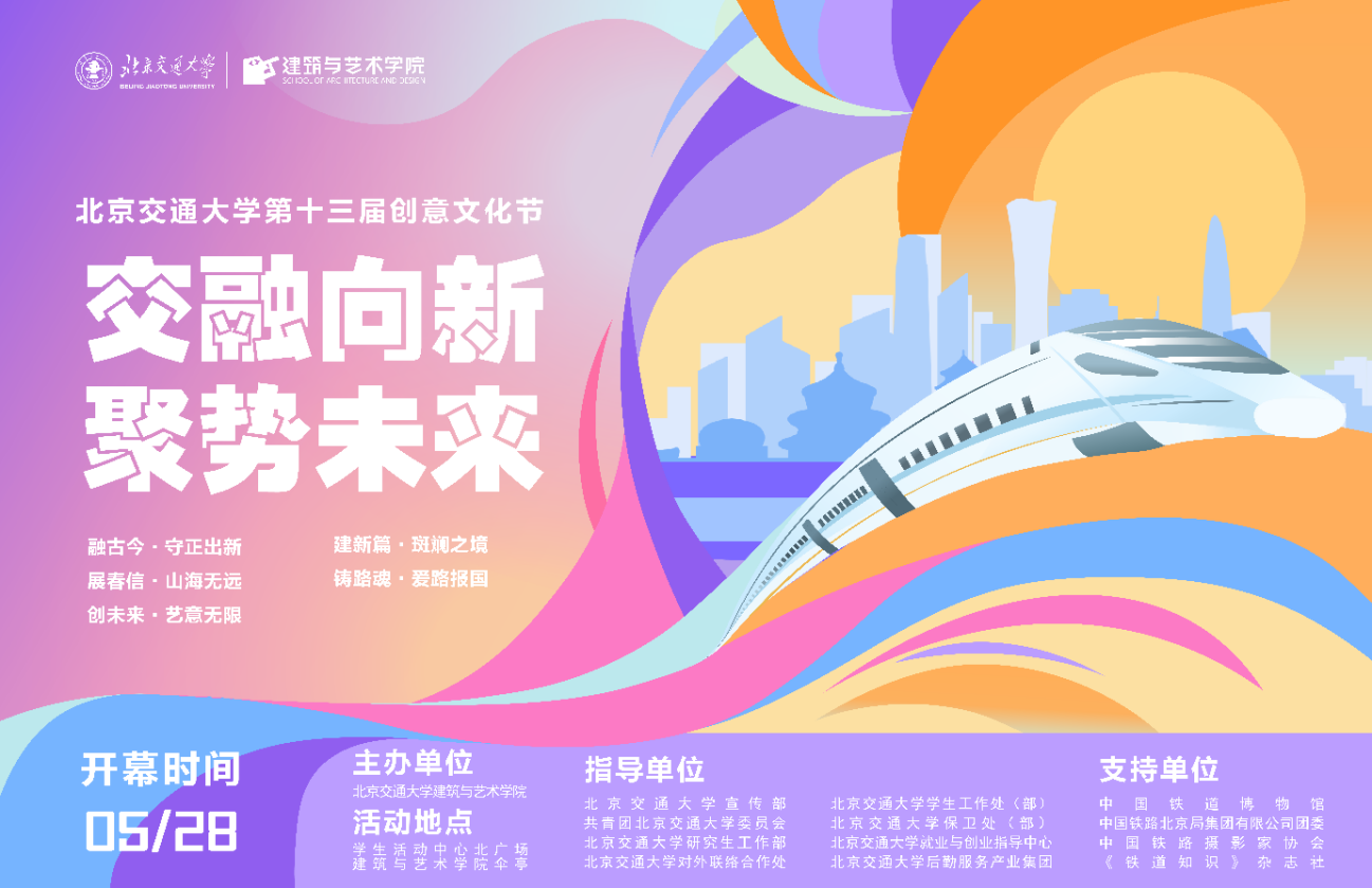 小鸭看看 创意文化节已经连续举办了十三届,从最初的课程成果展示,逐步与爱党爱国、爱校荣校教育相融合,从第二课堂实践逐渐发展成了“5+1”实践育人体系,已成为北京高校思政工作创新示范案例。今年创意文化节以“交融向新,聚势未来”为主题,寓意在新征程的起点上,以交通为特色融合学科发展,传承创意文化节初心,弘扬中华优秀传统文化,以交通为特色融合学科发展,适应新的形势,运用新的科技,开拓创新走向美好未来。