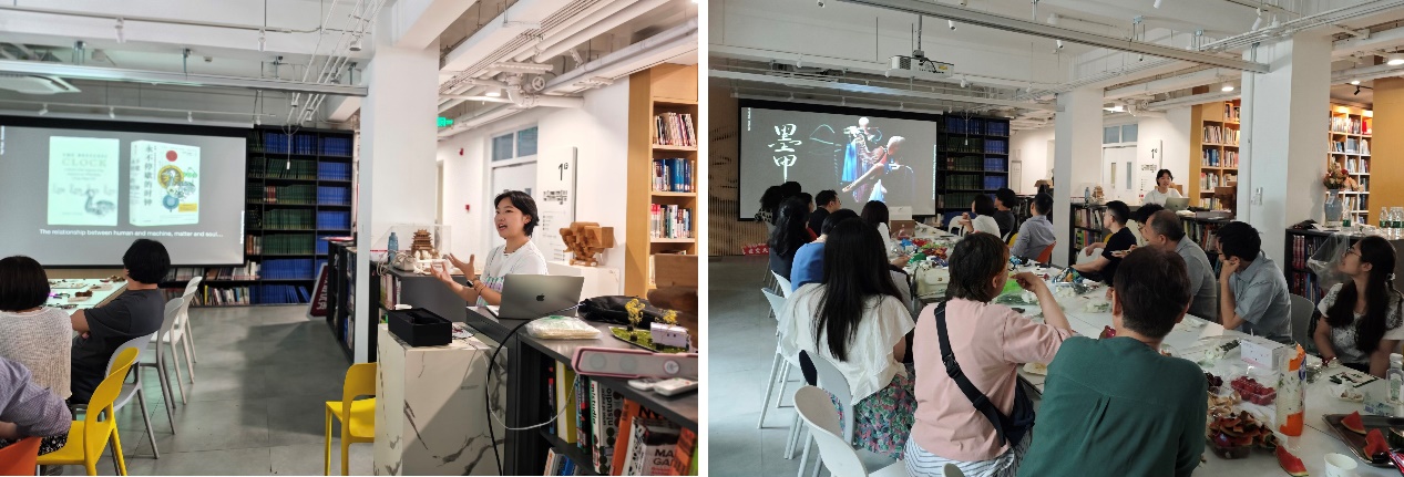 生日会后,学院青年教师联谊会组织“青芯”第7期青年教师学术沙龙,设计系的姚远老师为大家带来了一场别开生面的机器人艺术之旅。姚老师从自己制作机器人乐队的有趣经历出发,从神秘东方的《水饰图经》讲起,再到西方教堂上《永不停歇的时钟》,最后回归到中国的首支国风机器人乐队。她的分享不仅展示了科技与艺术的完美结合,也传递了对传统文化的传承与创新精神。