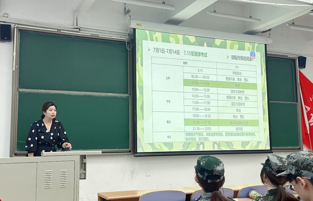 张京具体介绍了本次军训的具体时间安排、军训编组分配、军训纪律要求及成绩细则,帮助同学们熟悉军训内容、做好心理准备。